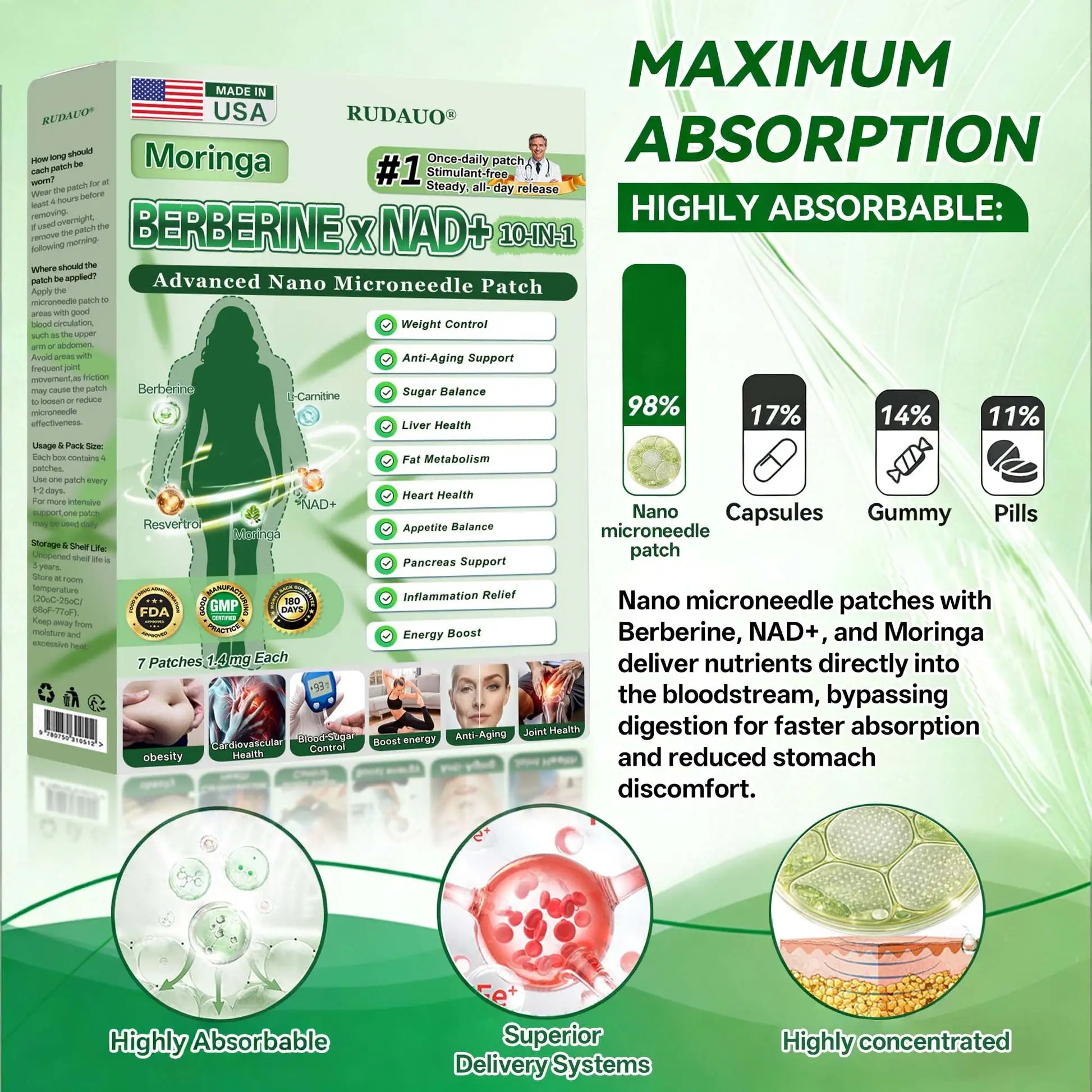 โ Easy Absorption: This formula uses an advanced nano microneedle patch delivery system combined with multi-zone controlled release, allowing key nutrients such as ๐๐๐ซ๐ฏ๐ฒ๐ซ๐ข๐ง๐ to be delivered transdermally. By bypassing the digestive system, it helps reduce gastrointestinal burden while providing a steady, balanced absorption process, making it especially suitable for individuals with sensitive digestion or those who prefer a non-injectable solution.