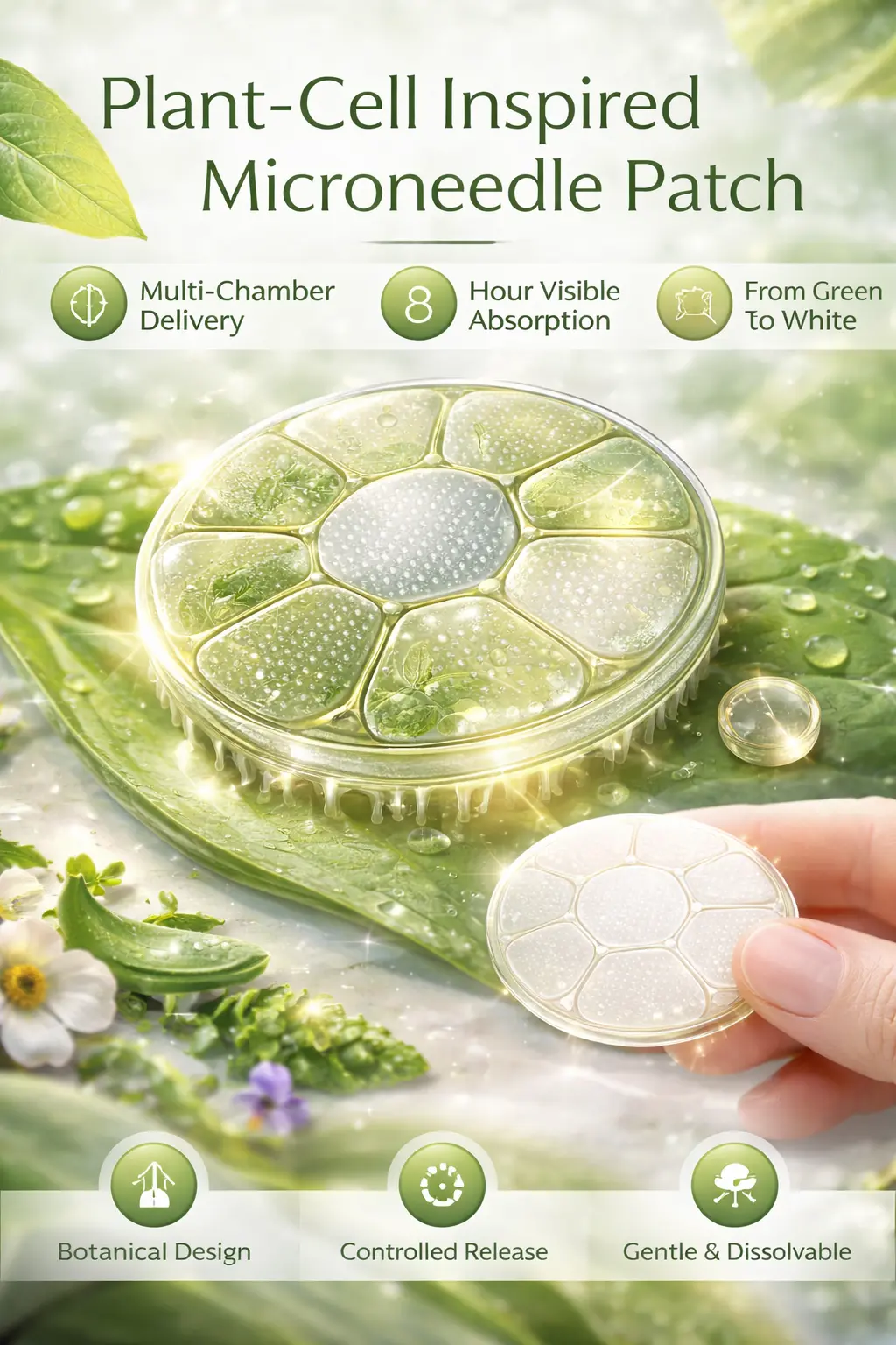 By adopting a dual-pathway strategyโsupporting appetite regulation and fat metabolism while also addressing post-weight-loss skin firmnessโwe observed significant improvements in body weight and metabolic health, without rebound weight gain or adverse reactions. To further enhance delivery efficiency, the system was developed with a plant-cell inspired multi-zone structure, allowing active components to be distributed across independent micro-chambers and delivered gradually through dissolvable nano microneedles, rather than being released all at once.