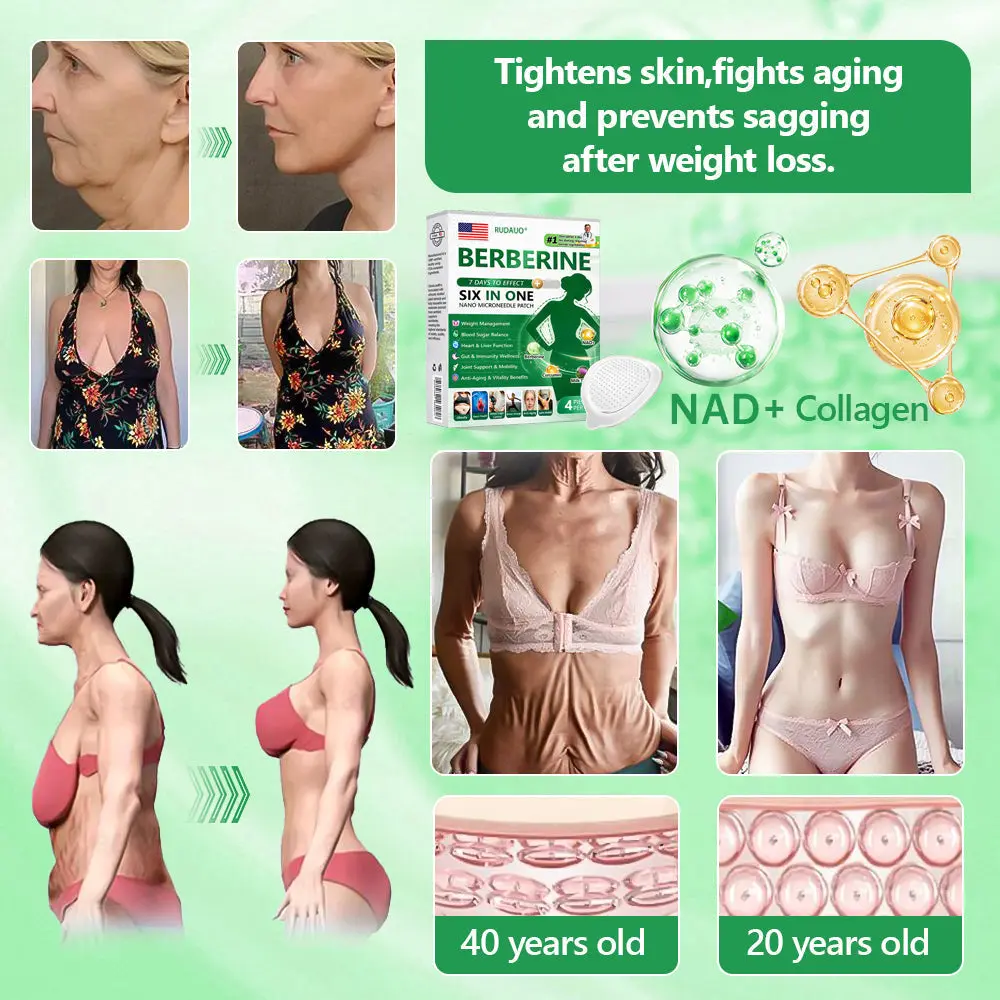 Collagen Peptides strengthen skin structure, reduce fine lines, and improve elasticity. NAD+/NMN stimulate cellular repair and collagen synthesis, while Omega-3 locks in moisture and improves skin smoothness. Green Tea Extract and Turmeric protect skin from oxidative stress and inflammation, slowing visible aging. Magnesium supports skin repair and hydration balance, while Silymarin provides detoxifying effects that brighten complexion. This synergistic formula helps lift sagging skin, smooth wrinkles, and restore a youthful glow after weight loss.