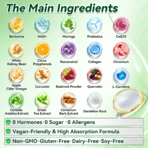 Benefits: Supports effective weight reduction and appetite regulation, stabilizes blood glucose levels, promotes cardiovascular health, reduces chronic low-grade inflammation, and helps alleviate metabolism-related fatigue.