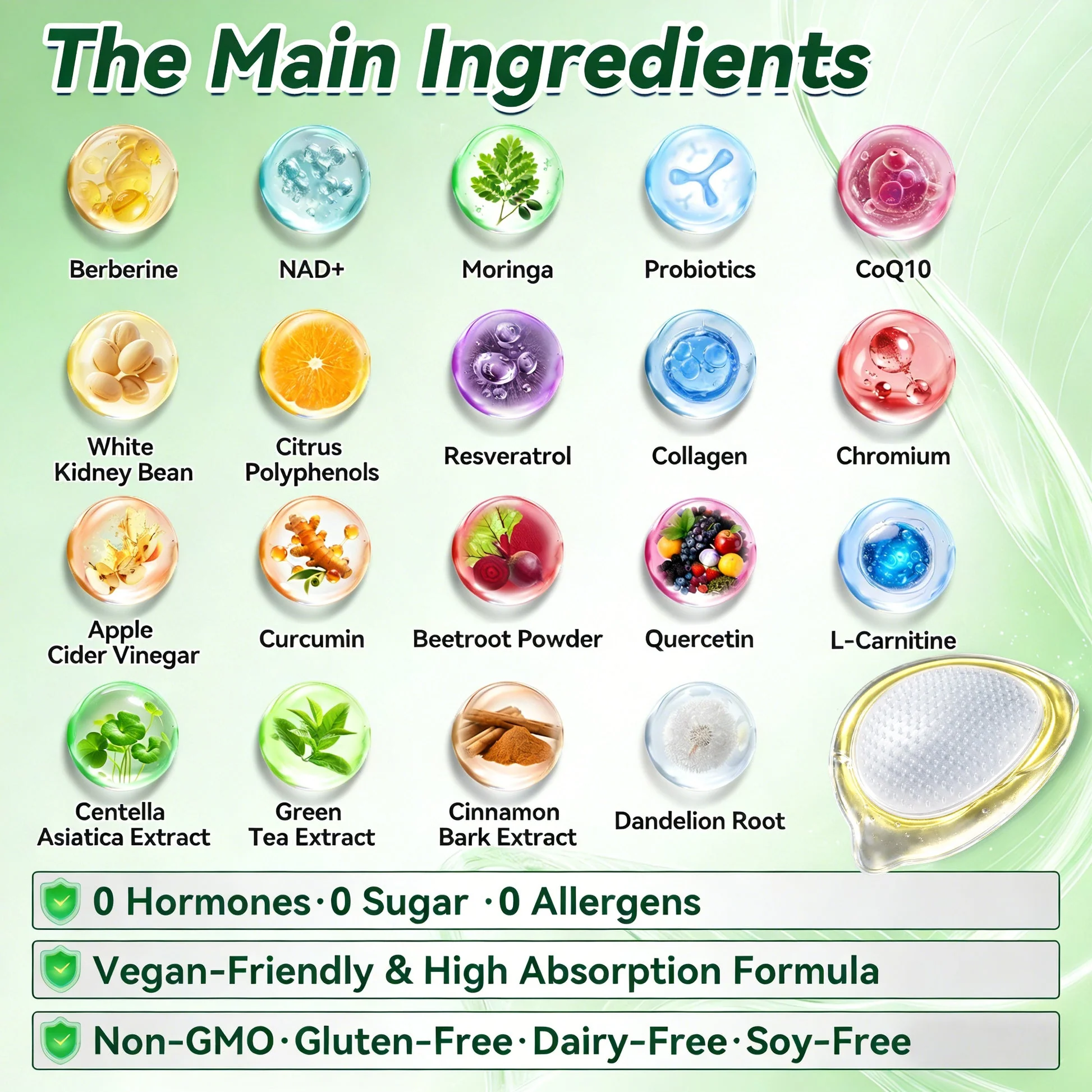 Ten star ingredients precisely formulated to create a complete fat-loss ecosystem: